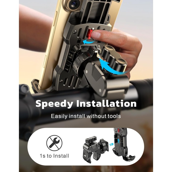 - [Dual-Lock Protection] This bike phone mount features an innovative dual-lock mechanism that locks with a single click, creating a firm grip that endures intense vibrations and sudden impacts. Ride with confidence, knowing your phone remains securely attached in all conditions.
