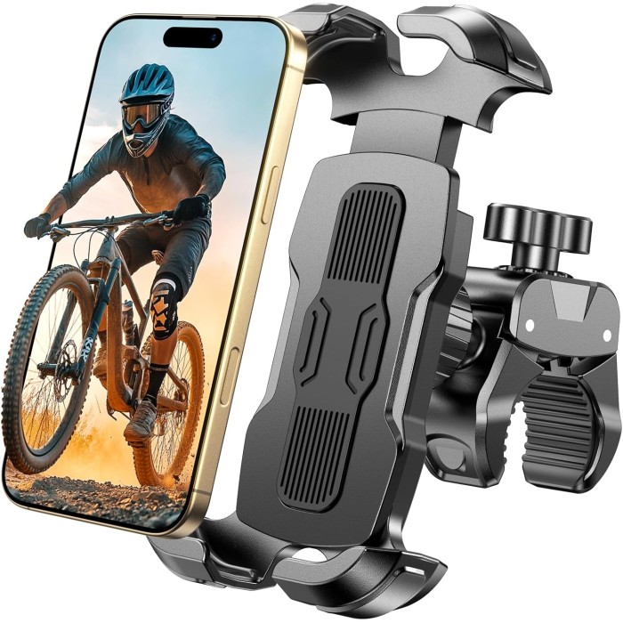 - [Ultimate Protection] Your phone’s safety is paramount—especially on rugged rides. Constructed with a reinforced frame and four silicone grips, our phone holder for bike ensures maximum phone security. Its optimized structural framework ensures a stable, rattle-free ride even on the most challenging terrain.