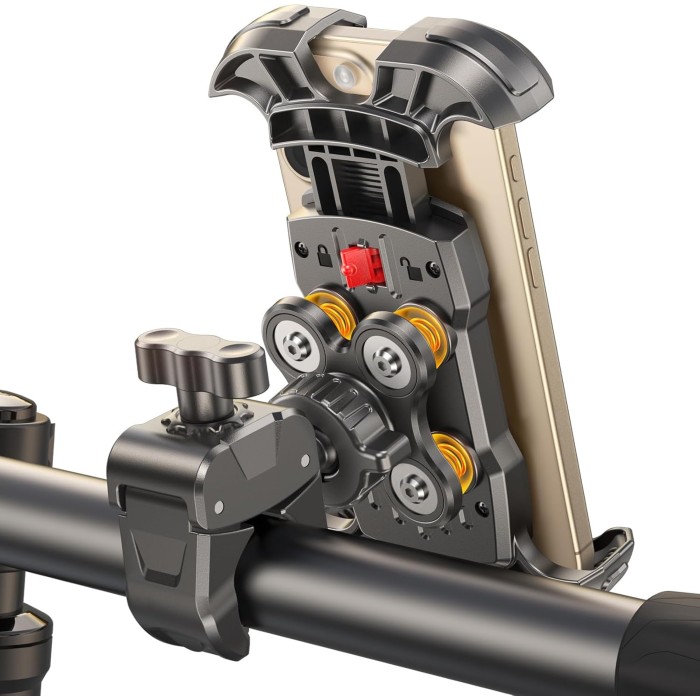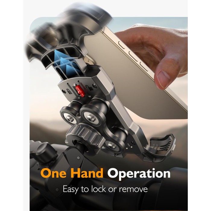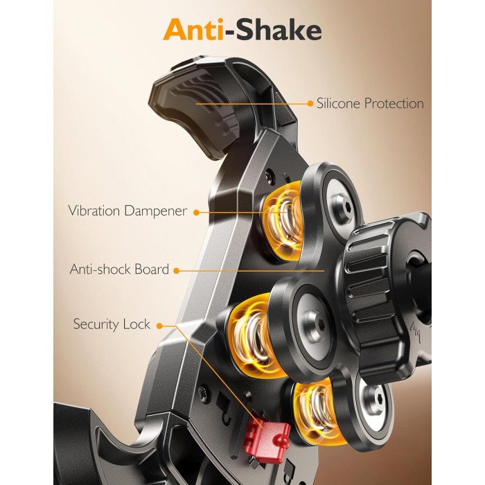 - [Anti-Shake Technology] Engineered with vibration dampening system, this phone holder for bike could effectively absorb road vibrations and bumps. Whether tearing down rough trails or cruising at high speeds, your screen stays rock-steady for glitch-free navigation — keeping both your display and camera safe from shake damage.