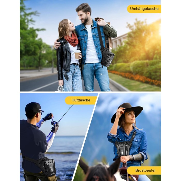 - 【Vielseitige Einsatzmöglichkeiten】 Die Rolgno Motorrad Tasche Bein eignet sich als Motorradtasche, Hüfttaschen, Brusttasche. Umhängetasche und Bein-Tasche für Aktivitäten wie Radfahren, Camping, Wandern, militärische Einsätze, Angeln, Reisen, Jagd, Klettern, Fotografie und den täglichen Gebrauch. Sie bietet praktische Funktionalität für Männer und Frauen und ist ein ideales Geschenk.