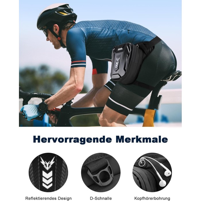 - 【Komfortables & Benutzerfreundliches Design】 Die Oberschenkeltasche ist mit atmungsaktivem Polyesterfasermaterial gefertigt, um maximalen Tragekomfort zu bieten. Ein reflektierender Streifen in der Mitte erhöht die Sichtbarkeit und Sicherheit bei Nachtaktivitäten. Zusätzlich verfügt sie über eine praktische Kopfhörerbuchse für Musik unterwegs sowie einen D-Ring-Verschluss für einfachen Zugriff auf Utensilien.
