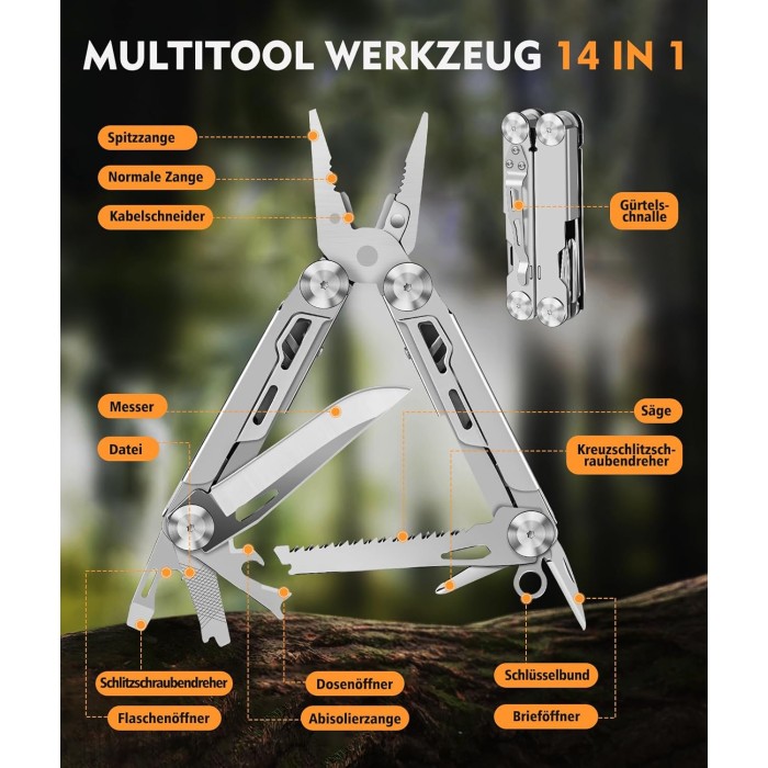 - 【Werkzeug Geschenke für Männer】 Unser Multitool Mini ist vielseitig und perfekt für Camping, Angeln, Wandern, Abenteuer, Reparaturen, Heimwerken, Überleben in der Wildnis und andere Outdoor- und Indoor-Aktivitäten. Und dieses praktische Gadget ist ein perfektes Geschenk für Ihren Vater, Freund, Ehemann oder männlichen Freund zum Vatertag, Valentinstag, Geburtstag, Jahrestag, Neujahr usw.