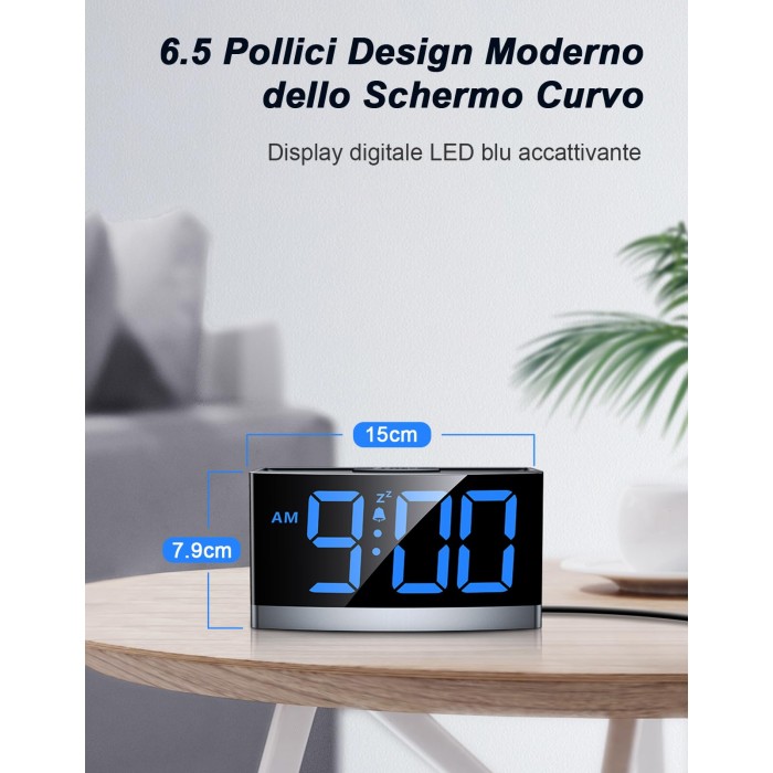 - 【Ampio Display LED & 5 Livelli di Luminosità】Rolgno sveglia digitale da comodino ha uno schermo curvo da 7.9*15 cm con numeri grandi, che può essere facilmente letto al buio anche se non sei molto sveglio o non indossi gli occhiali. Dispone di 5 livelli di luminosità per la selezione del tuo comfort personale. È possibile regolare lo schermo da luminoso a invisibile.