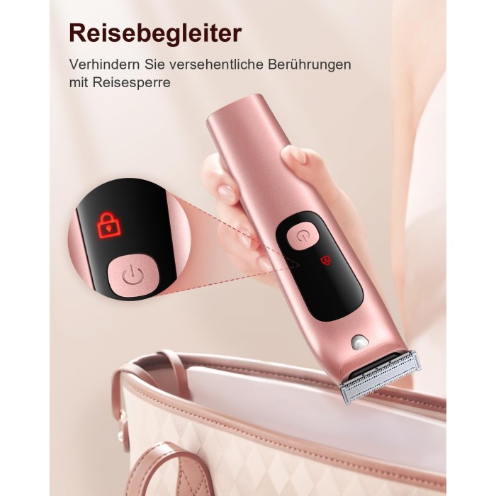 - 【Sicheres & Komfortables Trimmen】 Erleben Sie schmerzfreies und reizungsfreies Trimmen mit unserem hautfreundlichen Damenrasierer. Ausgestattet mit einem eingebauten LED-Licht sorgt er für klare Sicht für eine hygienische, glatte Rasur. Die hypoallergenen Edelstahlklingen sind speziell für empfindliche Haut konzipiert und bieten ein komfortables Trimmerlebnis.